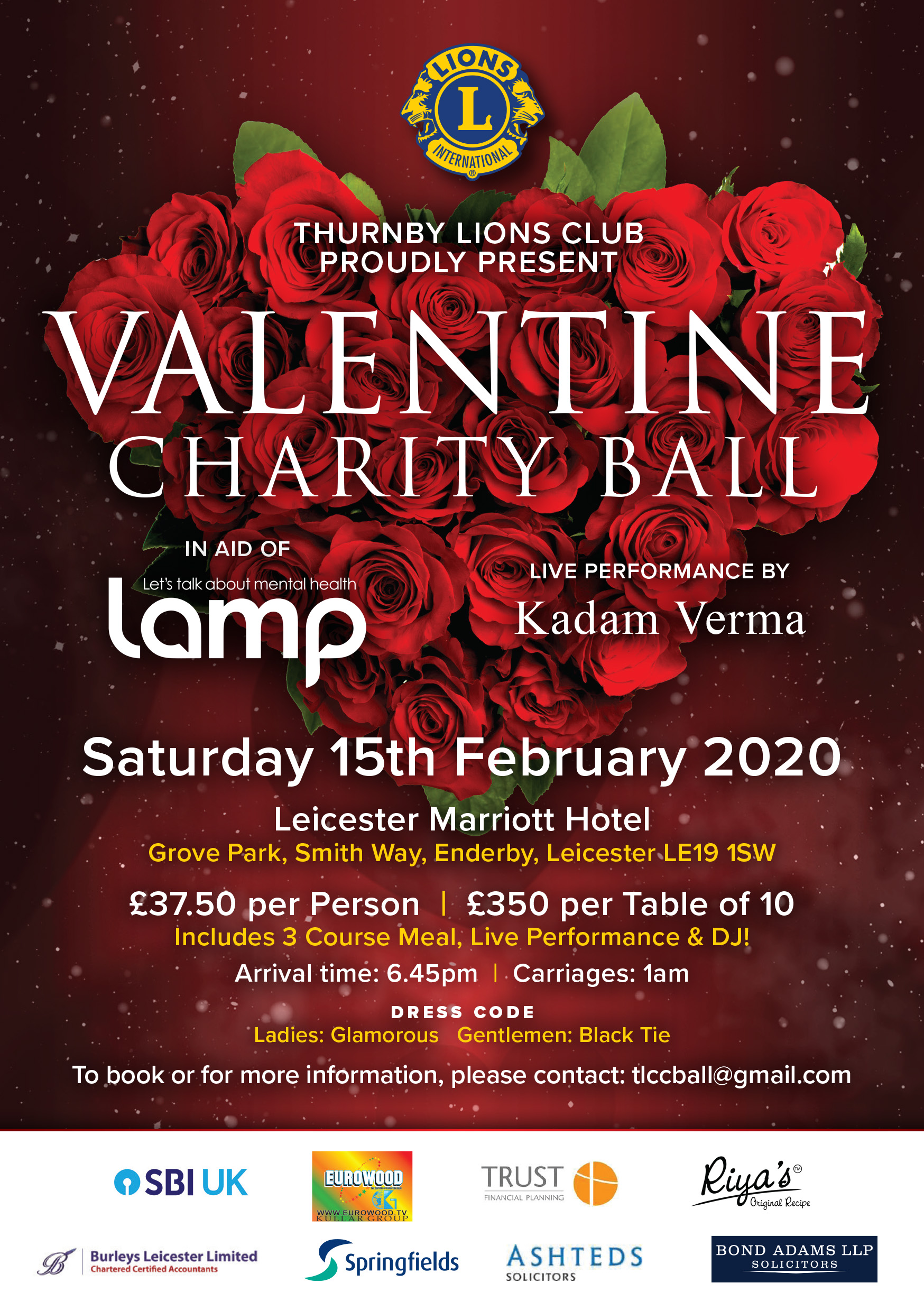 Have you made plans for your Valentines Day weekend? If not, how about attending Thurnby Lions Club’s event, on the 15th February 2020, who have kindly asked to raise funds in aid of Lamp! The details are below as follows: